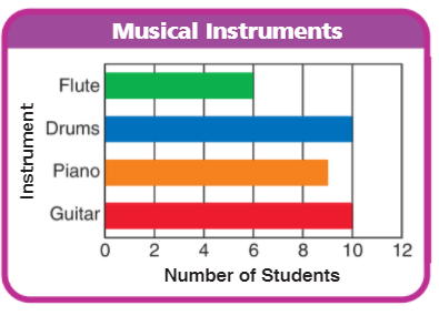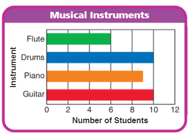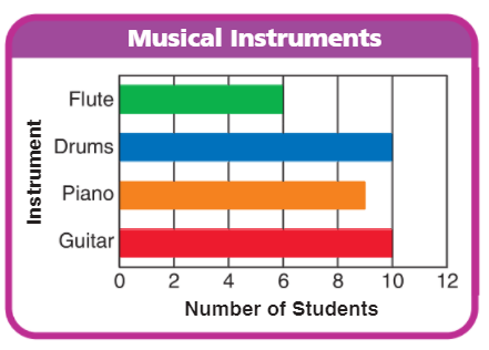 12. There are more students who play the trumpet than play the flute, but fewer students than play the guitar. Explain how you would change the bar graph to show the number of students who play the trumpet.