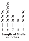 Robin collected shells during her vacation. She measured the length of each shell to the nearest inch and recoeded the data in a line plot.