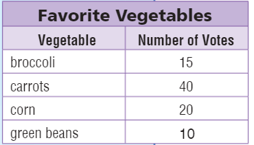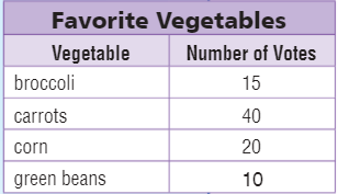 14. HOW MANY MORE votes did the two most popular vegetables get than the two least popular vegetables?