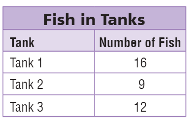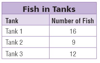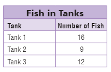 The Pet Shop keeps track of thenumber of fish it has for sale. The frequency table show how many fish are in three tanks.