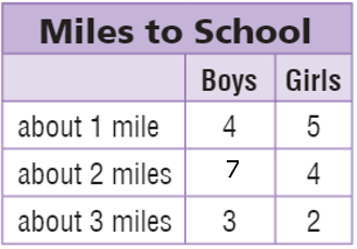 2a. Jake asked 25 students in his class how close they live to school. The frequency table shows the results.