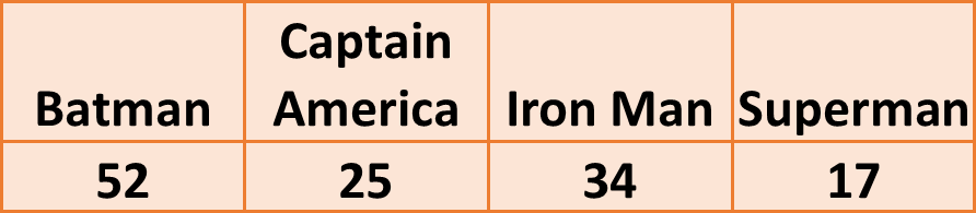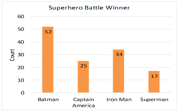 A researcher asked her class to pick who would win in a battle of superheros. Below is a frequency table and charts of the results: