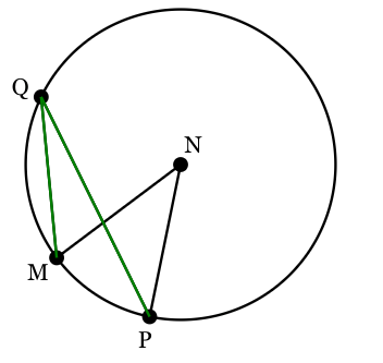 In circle N with m∠MNP=42o, find the m∠MQP.