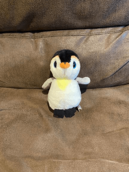 Who is the proud owner of this stuffed penguin?