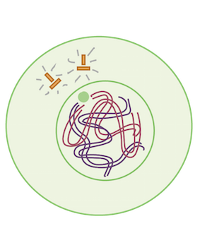 The cell has duplicated its centrosomes and DNA, but has not yet entered mitosis (chromosomes are decondensed and nucleolus and nuclear membrane are intact).