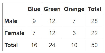 The table below records the results of a student survey in which each respondent chose one of three colors to paint their school's new cafeteria.