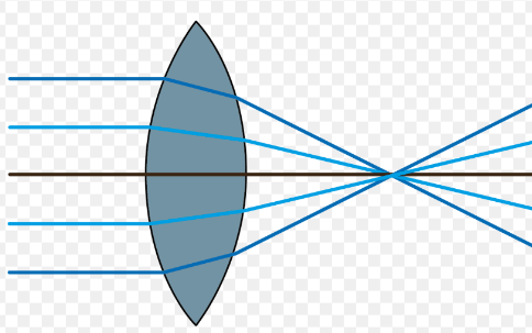 A lens that bulges in the middle and brings light together at a focal point