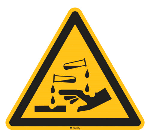 The symbol showing a test tube dripping onto a hand and metal means:
