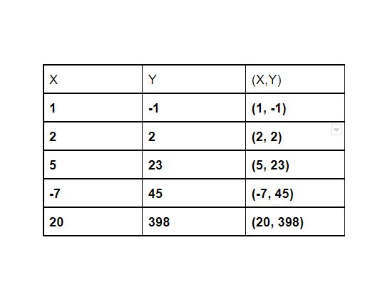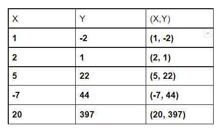 (1,-2) (12,9) (-4,-17)(7,25)(1,7)