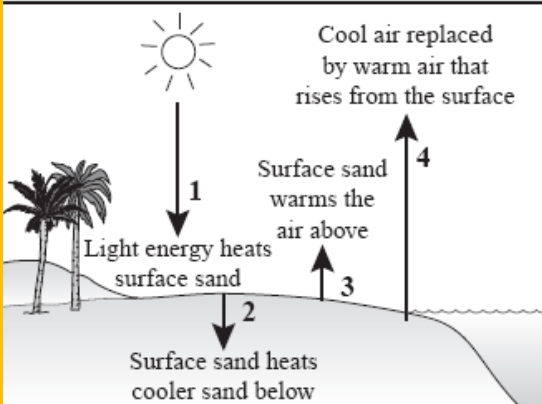 Double Jeopardy! The arrows in the picture below show several ways heat is transferred from the Sun as it strikes sand on the surface of a beach. Which arrow shows convection?