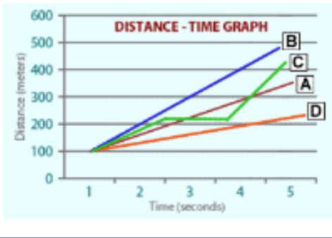 Which line on the graph shows the object that is traveling with the fastest constant speed?