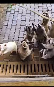 it is for this reason that this raccoon is white and begging for food in the wrong spot.