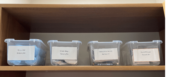 This set of soothing and distracting objects is available for patient use in the amenities closet on every GSH unit.