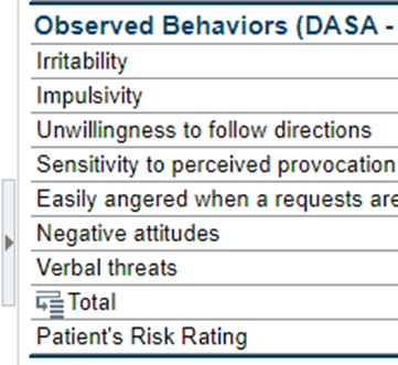 The Aggression Prevention Protocol (APP) – which addresses violence risk in patients with high DASA scores – Includes these two non-pharmacologic interventions.