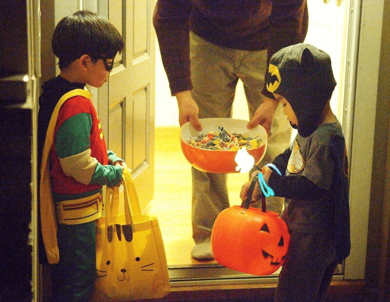 When Halloween first started, why did people put candy outside of their houses?