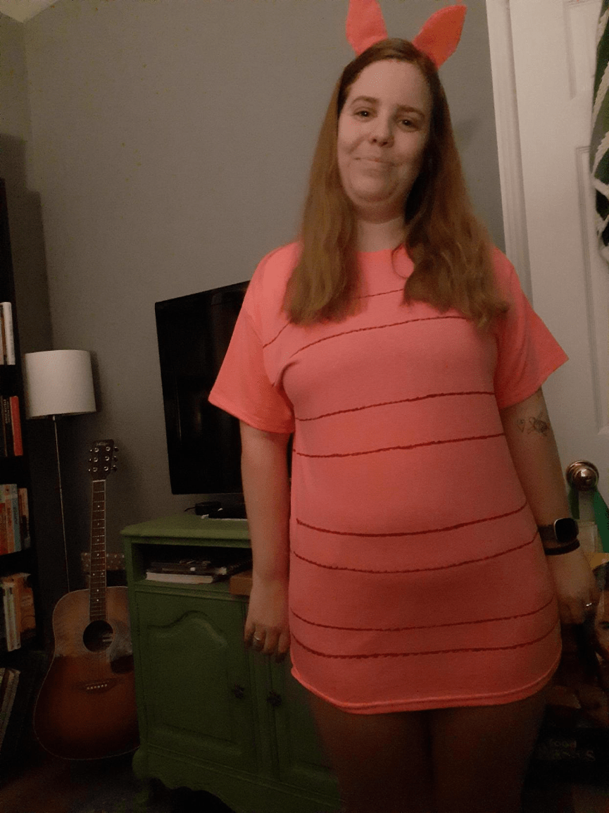 Piglet from Winnie The Pooh and she got lost in the 100 acre wood looking for her good buddy Eeyore!