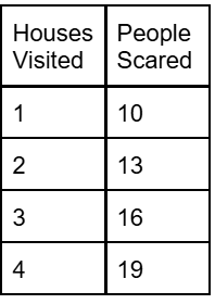 Frankenstein is out scaring people for Halloween. He creates this table of values to keep track of how many people he has scared.