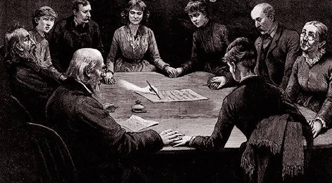 These events, hearing from the beyond, were popular in Victorian days, when the one seen here took place