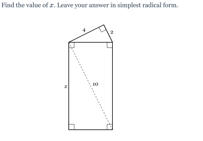 Calculate the area of the right triangle below. Leave in most simplified form.