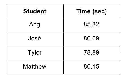 Interpret the pattern to explain the correct finishing order from fastest to slowest.