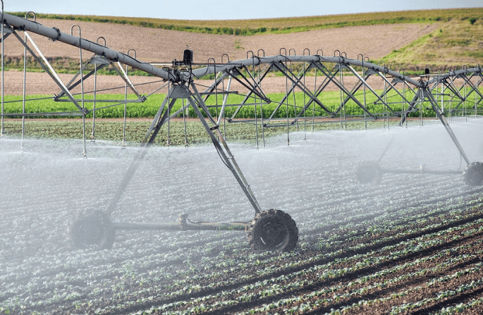 Farmers in dry areas must do this to make sure crops grow, often using canals or sprinklers. Without it, crops would die.