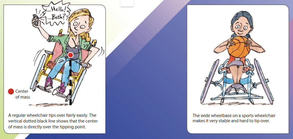 What is reread the section, look at the text features (like pictures), and use the explanation that angled wheels make it harder to tip over.