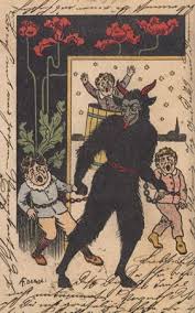 Which horned figure punishes naughty children at Christmastime?