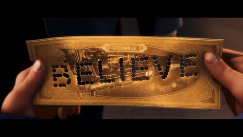 What word does the conductor hole punch into the Hero Boy's ticket?