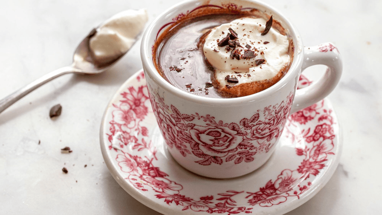 This heated drink uses cocoa beans or powder, and can be topped of with either marshmallows or whipped cream