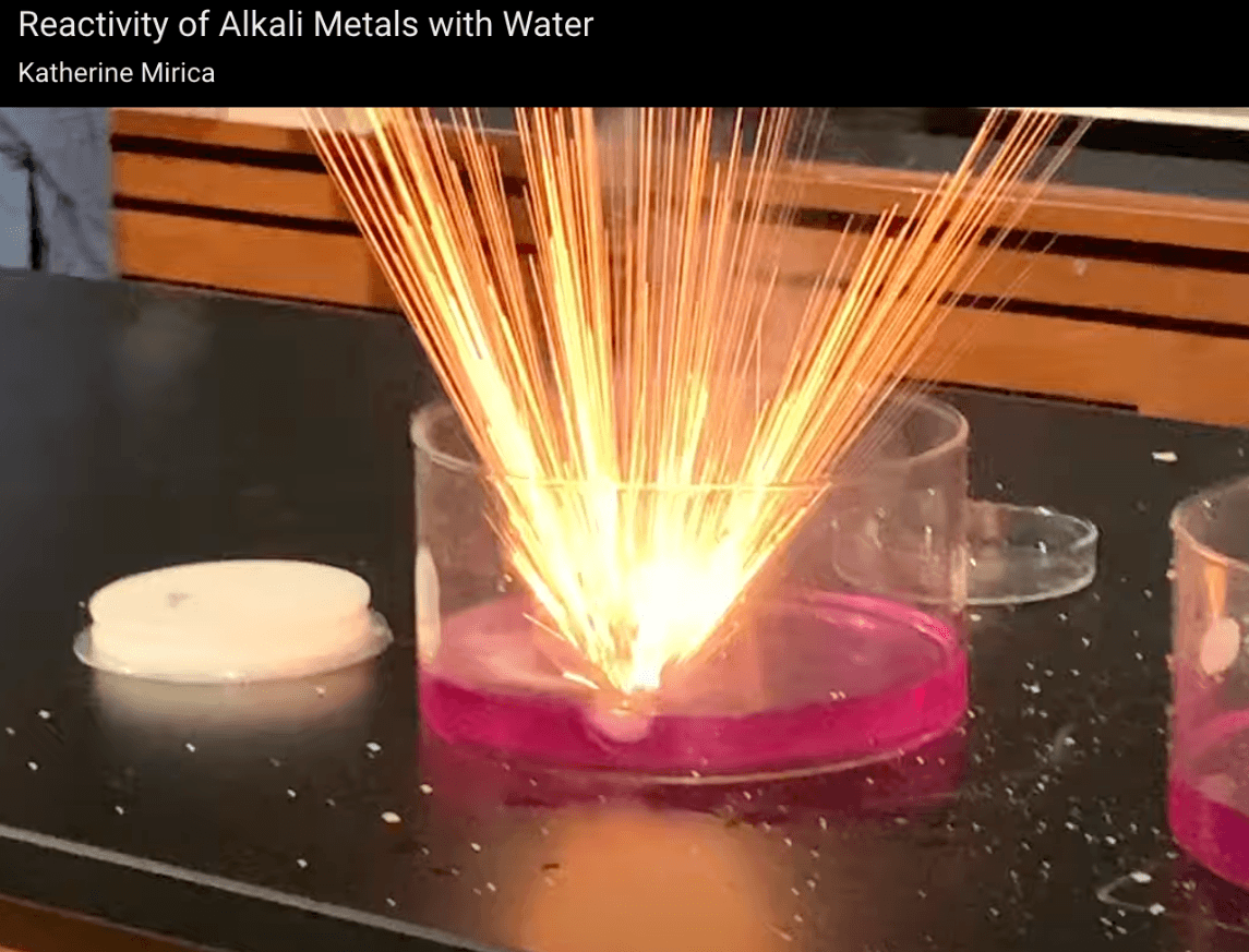 Which Alkali Metal is pictured reacting with water here? (Li, Na, or K?)