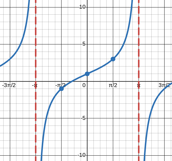 Write a tangent function with a vertical shift of 2 and a period of 360.