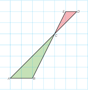 Dus CDE + ABC = 1 + 4 = 5 cm^2