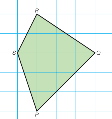 Bereken de oppervlakte van PQRS. 1 hokje is 1 cm.