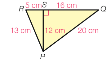 Oppervlakte PQR= 0,5 x 3 x 2,6 = 3,9 cm^2