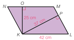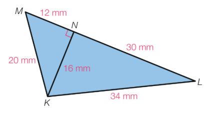 Bereken de oppervlakte van driehoek KLM.