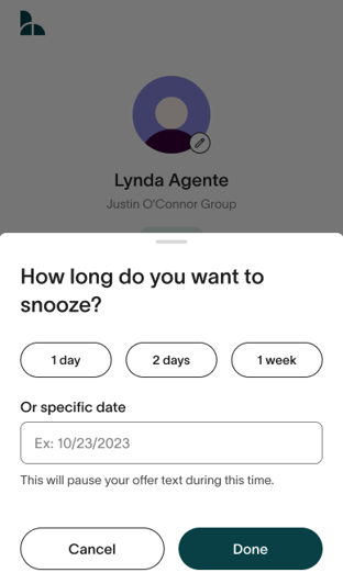 An agent would like to snooze Receiving Lead Offer Texts- How do we guide them along?