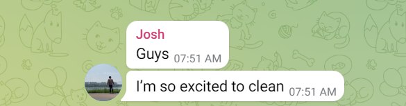 "Josh's beige flag is he loves cleaning so much, he was skipping to work yesterday morning - basically squirming with joy."