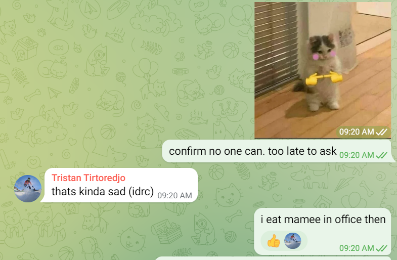 Nurin: The chicken was soooo good! The sambal was ___ tho -- could be better honestly...