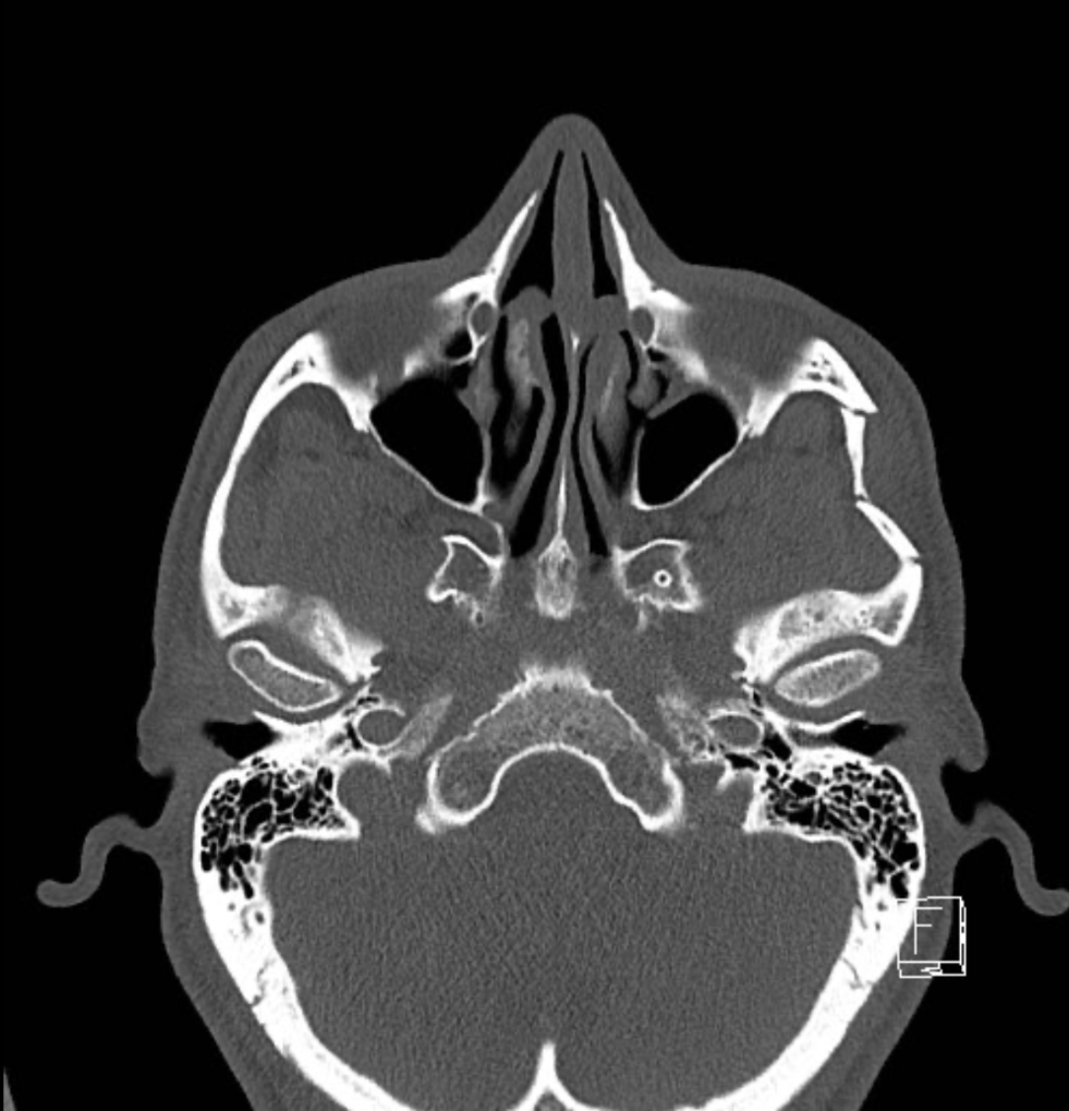 These bones form the zygomatic arch. The frontal bone does not contribute to the zygomatic arch and is less likely to be fractured in blunt force trauma to this area of the face, and is not affected in the axial CT image shown.