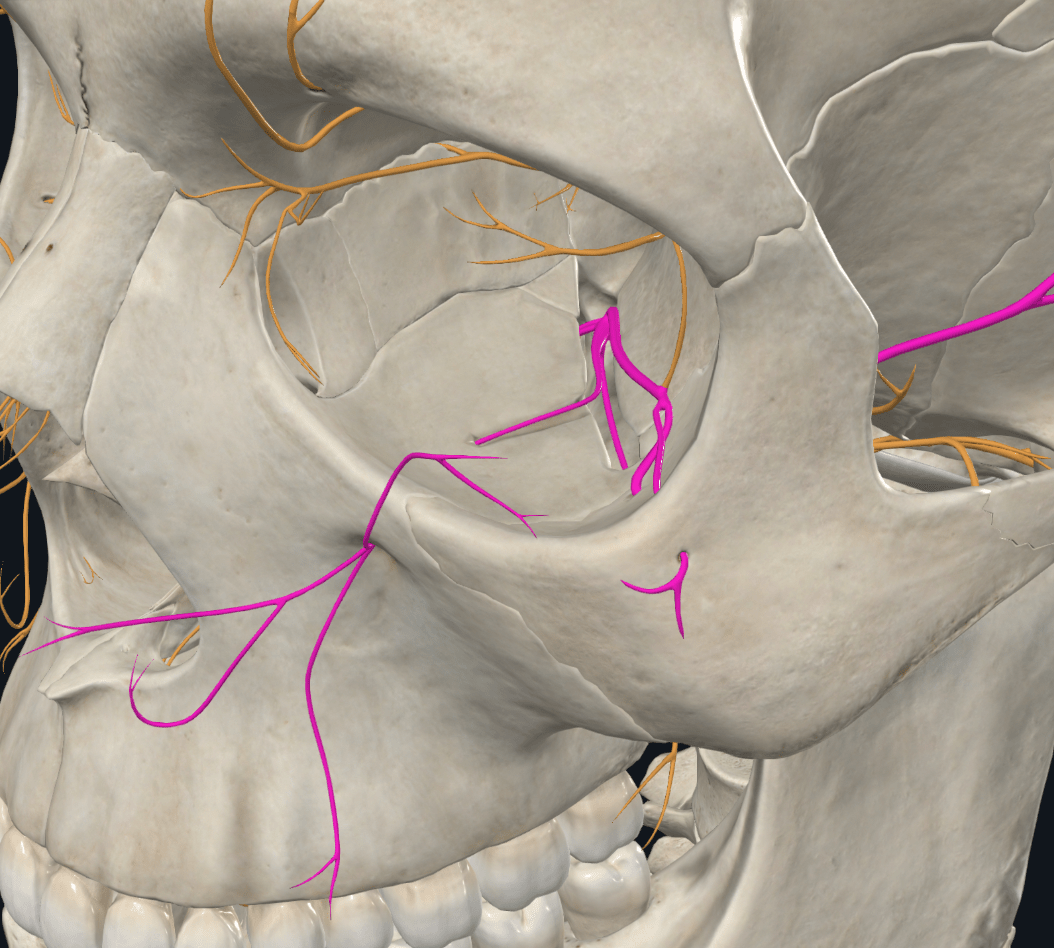 True or False: The affected artery gives rise to the supra-orbital artery along its course.