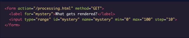 A form containing a slider that has a maximum value of 100, a minimum value of 0 and moves in steps of 10.