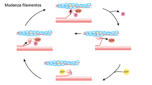 1) su hidrólisis por una ATPasa activa la cabeza de miosina, de manera que ésta se puede unir a la actina y rotar