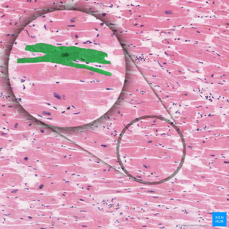 Tipo de tejido muscular presenta estriación, así como disposición empantalonada, y discos intercalares, fibras musculares bien orientadas.
