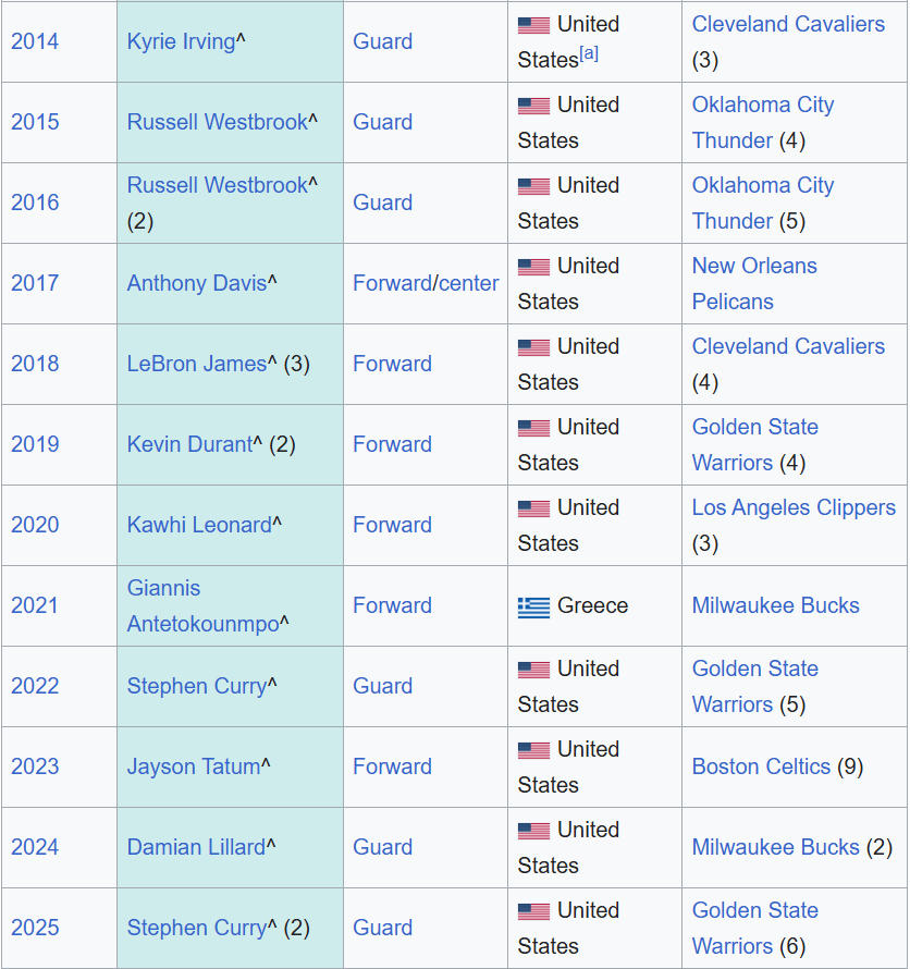NBA All start mvp's