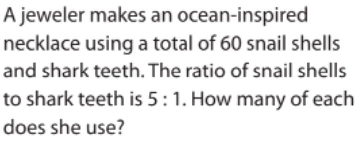50 snail shells and 10 shark teeth