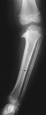 Although the risk of fracture with the development of pseudarthrosis exists, the initial treatment consists of bracing through maturity. Narrowing of canal at site of fracture is important distinguishing factor from NAT