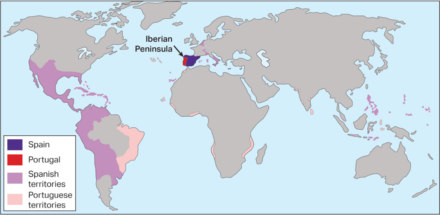 Does this source show that Spain had a larger colonial empire than Portugal? Explain how you know.