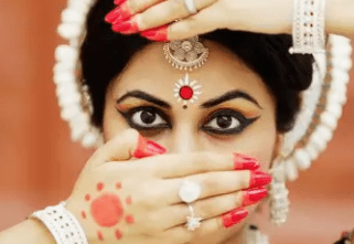 This decorative dot is worn on the forehead by Indian women, and it is usually red.