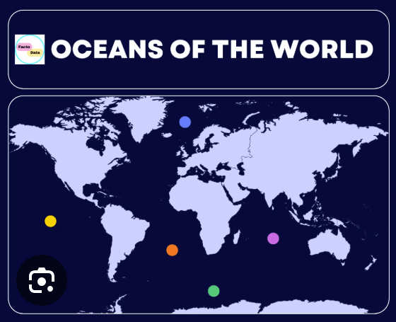 Pacific Ocean, Atlantic Ocean, Indian Ocean, Arctic Ocean, and the Southern Ocean.