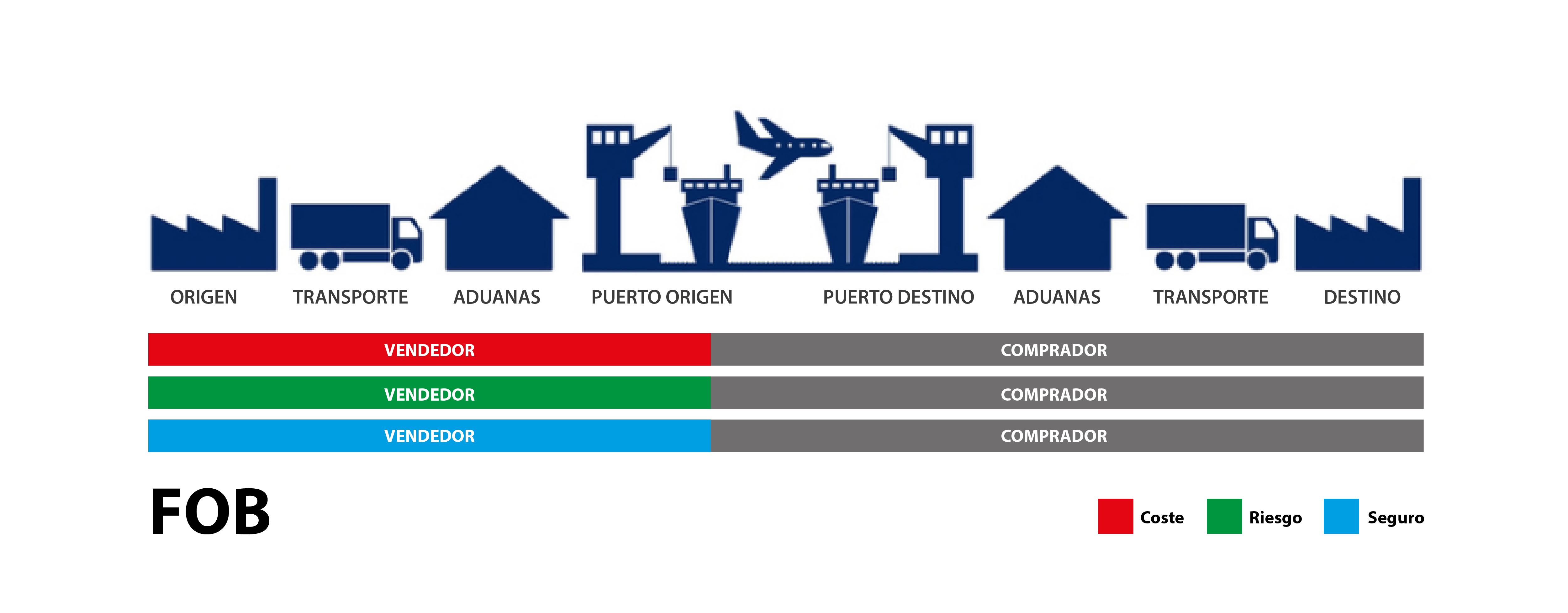 ¿Cuál de las siguientes afirmaciones es correcta sobre una exportación FOB?